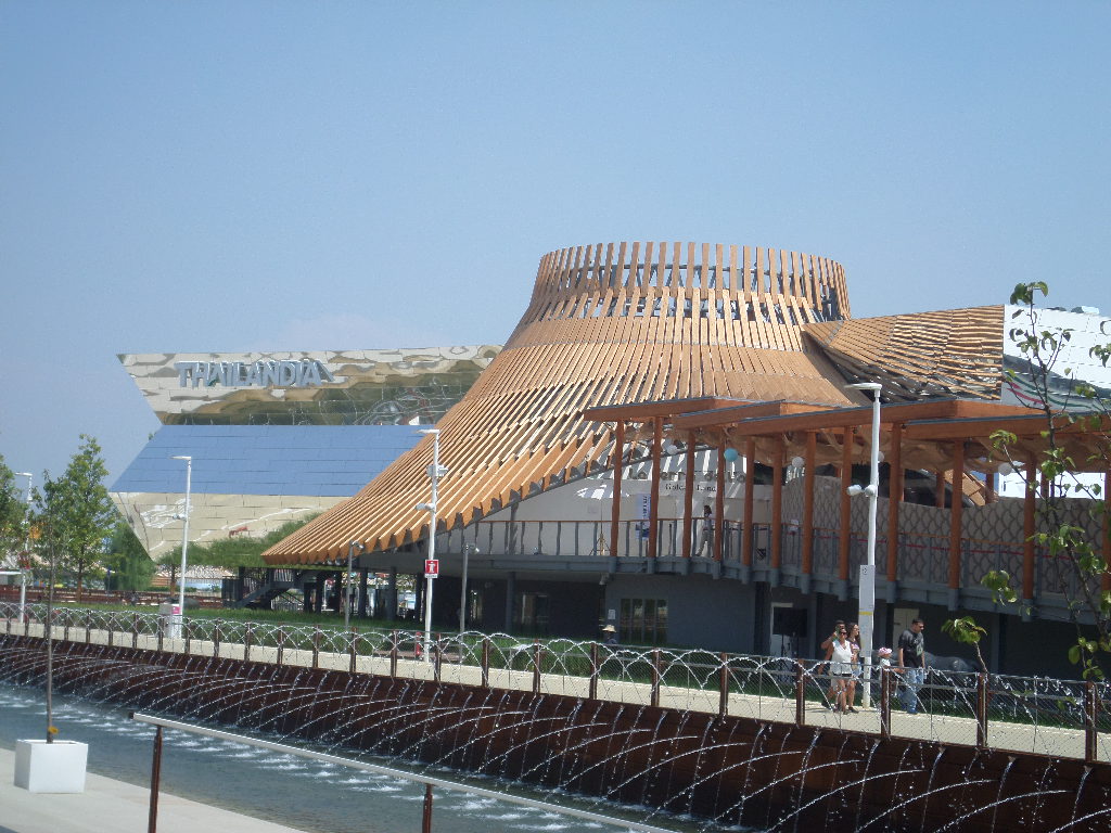 Pavillon de la Thaïlande: La forme du pavillon reprend celle du chapeau traditionnel des paysans des rizières Ngob, symbole de l’agriculture et de la sagesse. Vous découvrirez un film documentaire sur la culture du riz, les innovations technologiques dédiés à la production agricole et alimentaire et la stabilité alimentaire . Un magnifique voyage au cœur de la cuisine Thaïlandaise qui vous fera (re)découvrir les différents plats traditionnels.