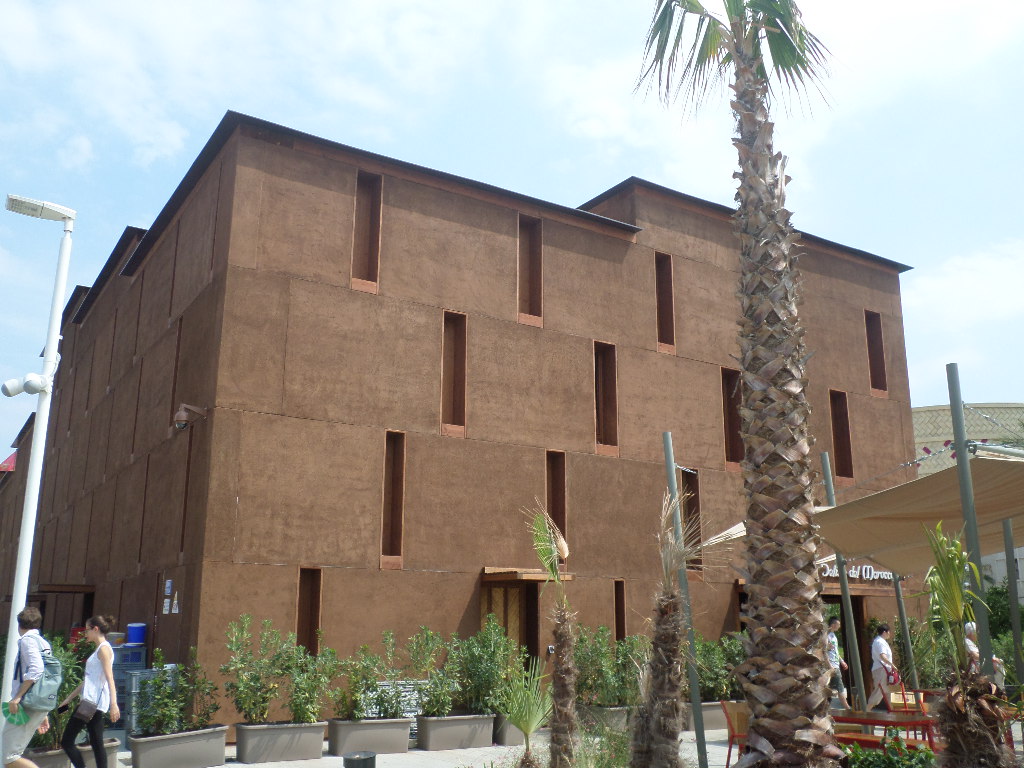 Marocain. A travers un parcours qui fait appel à nos sens ; des milliers de senteurs , des ambiances de lumières,des ombres rafraîchissantes, des paysages sonores, et des atmosphères colorées. Le pavillon nous plonge en immersion dans les terroirs marocains : à la découverte de l’agronomie de chaque régions à travers de magnifiques photos de fruits, de légumes et d’épices exposées aux quatre coins du pavillon.
